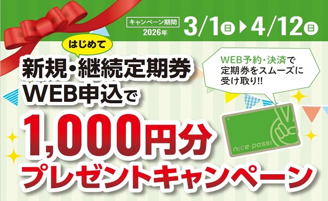 【1,000円分プレゼント!】定期券のご購入はWEB申込が便利でお得!