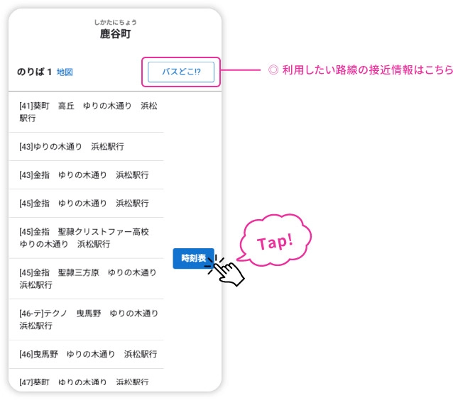 ■ バス停に掲出されている時刻表を確認できます